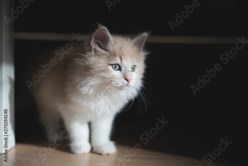 indoor, sunlight, kitten, adorable, alertness, animal eye, animal hair, beautiful, curiosity, cute, domestic cat, felino, fluffy, fur, cat, looking away, lurking, no people, one animal, photo, playful, portrait, selective focus, shadow, standing, staring, sunny, whisker