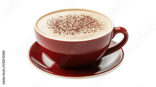 Red cup cappuccino with cocoa powder isolated on a transparent background