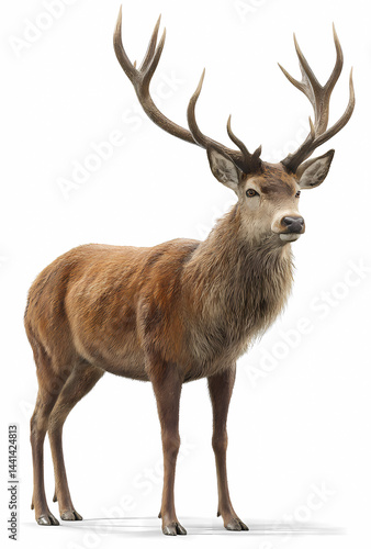 Red deer, full-body shot, white background, photorealistic style, high resolution, clear and sharp focus