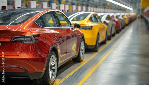 electric car, technology, automation, modern, factory, car, electric, red, glossy, assembly, assembly line, manufacturing, innovation, environmentally friendly, industry, vehicle, production, automotive, energy, battery, eco, transport, transportation, efficiency, renewable, sustainability, futuristic, machinery, engineering, robotic, assembly line, sleek, precision, clean energy, design, quality control, progress