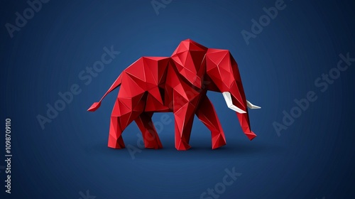 Red elephant depicted in a polygonal low poly geometric style a wild animal in an origamiinspired vector illustration
