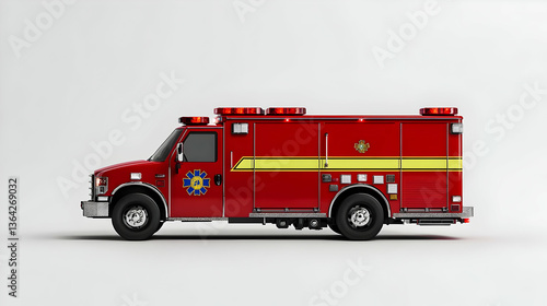 Red Emergency Rescue Truck Side Profile On White Background