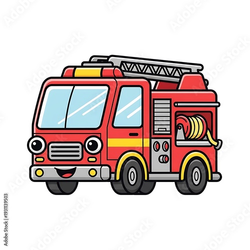 Red Fire Truck Cartoon Illustration.
