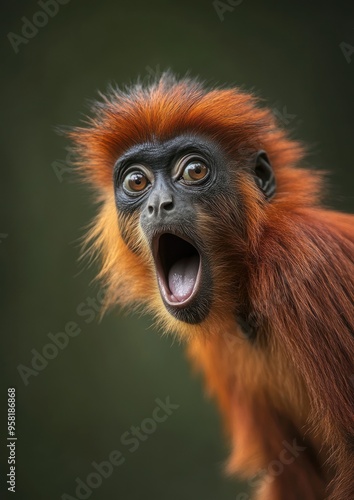 open mouth, fluffy, dark green, fur, vibrant, lively, contrast, animal, nature, joy, surprise, bright, exciting, happy, cheerful, cute, wildlife, natural, modern, photo, artistic, unique, whimsical, contemporary, creative, fantasy, character, adorable, 21st century, portrait, forest, portraiture, emotional, expressive, colours, free, mystery