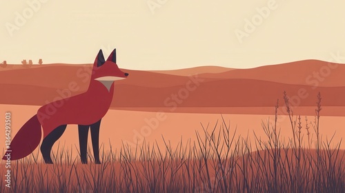 fox, red fox, autumn, landscape, wildlife, illustration, animal, nature, sunset, field, hill, mountain, silhouette, vector, graphic, design, art, fall, orange, brown, background, scenery, wilderness, wild animal, tranquil, peaceful, serene, calm, rural, country, environment, ecology, fauna, mammal, dynamic, retail, digital