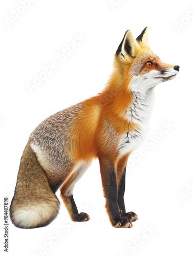 Red fox standing, isolated on a white background. PNG transparent.