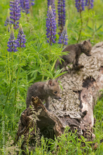 Red Fox (Vulpes vulpes) Kit Stands on End of Log