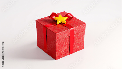 gift, box, red, yellow, star, present, surprise, festive, holiday, celebration, ribbon, bow, cardboard box, texture, design, three-dimensional, render, square, christmas, birthday, anniversary, decoration, party, occasion, happy, joyful, bright, shiny, elegant, luxury, premium, graphic, image, background, isolated, white, studio, product, commercial, marketing, branding