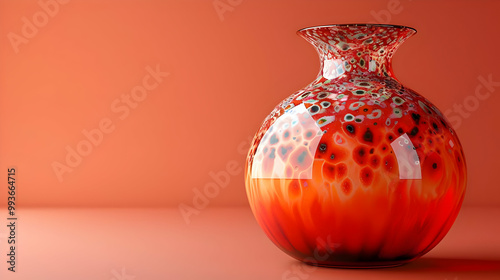 Red Glass Vase with Abstract Design, Ideal for Copy Space