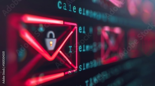 Red glowing email icon with padlock, symbolizing secure communication.