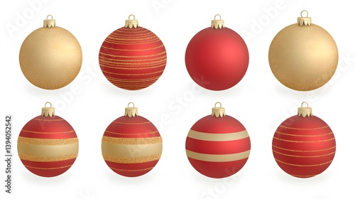 christmas, ornament, bauble, red, gold, glistering, christmas ornament, christmas bauble, holiday, decoration, decor, christmas decoration, festive, celebration, winter, christmas bauble, red ball, set, collection, design, graphic, illustration, christmas design, shiny, sparkly, texture, isolated, white background