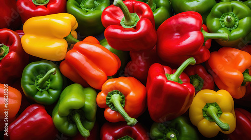 Red, green, yellow bell pepper background. Top view