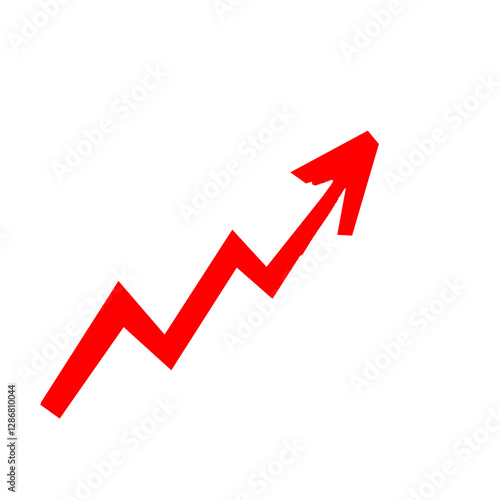 Red Hand-Drawn Arrow Up Growth Chart Symbol Rising Graph Line Business Trend Indicator Success, Progress, Increase Icon