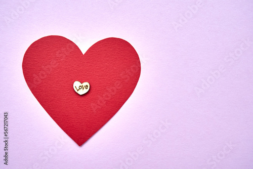 Red heart shape on abstract pink background in valentine's day love concept with sweet and romantic moment.