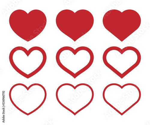 Red heart shapes icon set. Design elements for Valentine's day, love, or romance. Flat heart collection, herz sammlung. Vector illustration