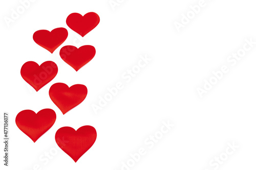 Red hearts, isolated on white background. Decorative element for design for Valentines Day, invitations, cover, wedding card.