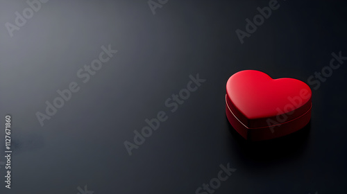 Red heart-shaped box sitting on dark surface symbolizing love and affection