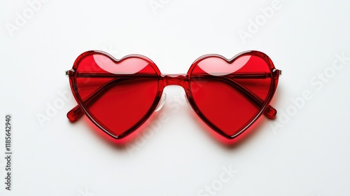 Red heart-shaped sunglasses on a minimalistic white background showcasing a trendy fashion accessory for love-themed events and celebrations