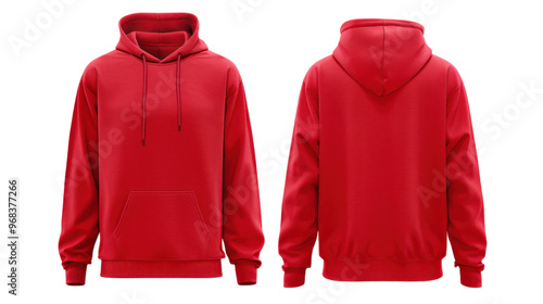 Red hooded sweatshirt front back on transparent background