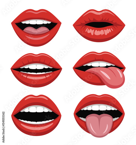 open mouth, red lipstick, white teeth, lip gloss, facial features, cosmetic product, vibrant color, isolated image, graphic design, digital illustration, vector graphics, make up