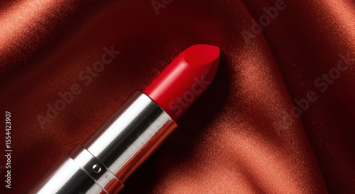 Red Lipstick on Luxurious Red Satin Fabric Beauty Cosmetics Makeup Product