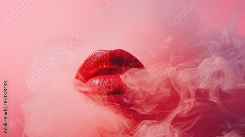 Red lipstick on pink backdrop flying