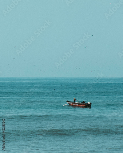 red little boat in the sea