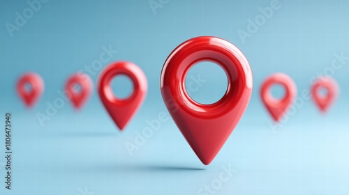 location, marker, pin, red, map, navigation, travel, destination, point, geography, direction, symbol, icon, signs, guide, sharpened, blur, background, blue, colours, shape, glossy, shiny, perspective, depth, arrangement, row, series, group, isolated, closeup, studio, graphic, design, element, concept, modern, minimal, simple, three-dimensional, render, illustration, business, planning, strategy, success, target, choice, selection