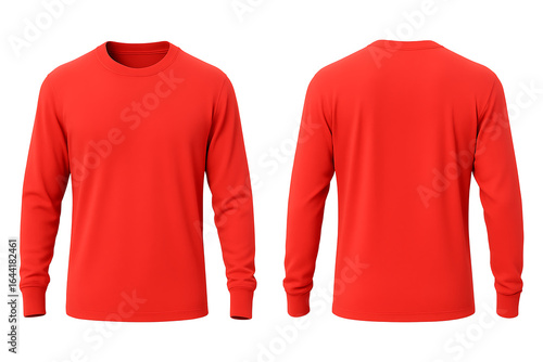 Red long sleeve t-shirt front and back view mockup isolated on transparent background