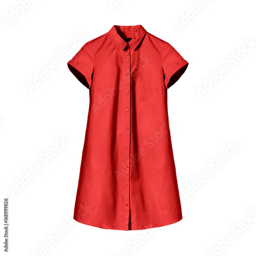 Red long woman`s shirt isolated on white background