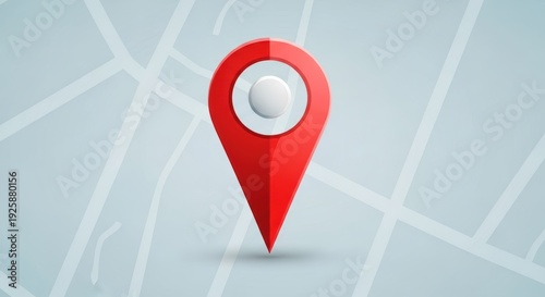 Red map pin marker with white center on light blue navigation map indicating location and direction for gps tracking and logistics.