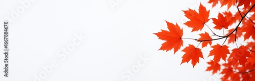 Red maple leaves on branch against white background with copyspace on left side for poster, banner, or seasonal design template. Ai generative
