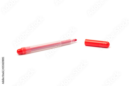 Red marker pen on isolated background with clipping path. Vivid highlighter and blank space for your design or montage.