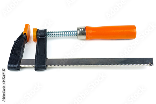 clamp, engineering, tool, handle, red, metal, workshop, equipment, isolated, industry, compression, carpenter's shop, pressure, hardware, construction, hold, technology, clipping, furniture, orange, white, background