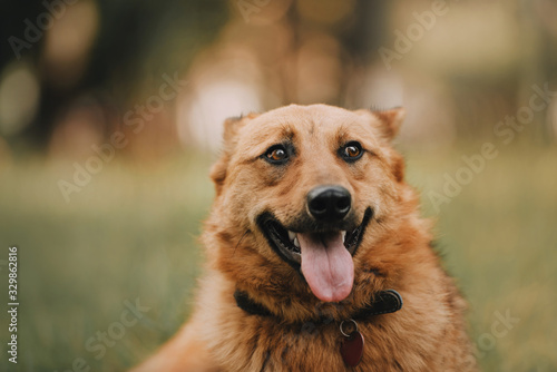 mixed breed, dog, pet, collar, tongue, panting, eye, expression, closeup, old, red, animal, nature, portrait, canino, green, breed, grass, grey, spring, summer, walking, shepherd, cute, domestic, field, mammal, adorable, natural, funny, beautiful, young, happy, meadow, background, small, big, crossbreed