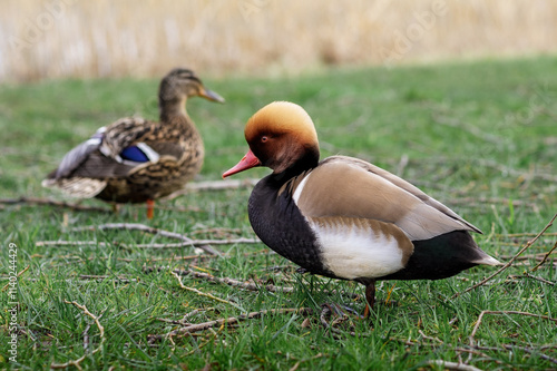 Red, netta - duck genus, male, anatidae, red-crested pochard, head, netta, greek