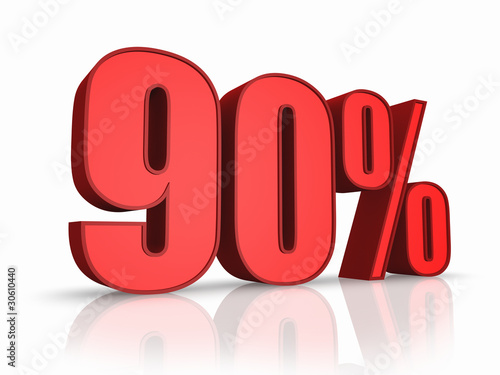 90, three-dimensional, red, 90, percent, percentage, number, tags, economy, finance, calculation, isolated, market, marketing, mathematic, rate, render, savings, signs, statistic, symbol