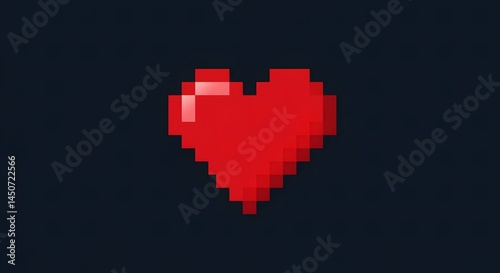 Red Pixel Heart Illustration on Dark Background for Gaming and Design
