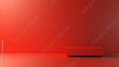 red, background, wall, floor, platform, stage, pedestal, display, product, showcase, presentation, minimalist, simple, clean, modern, abstract, geometric, shape, cube, rectangular, box, glossy, shiny, smooth, texture, colours, vibrant, bright, intense, hue, shade, tone, light, shadow, gradient, illumination, studio, scene, setting, design, element, blank, empty, space, area, surface, object, concept