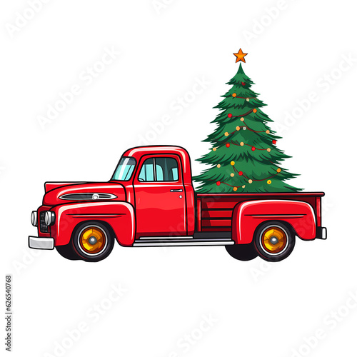 merry christmas, christmas, christmas, christmas tree, retro, truck, vintage, tree, holiday, red, watercolor, car, new year, merry, buffalo