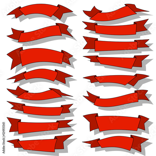 banner, ribbon, collection, decoration, design, symbol, element, icon, illustration, label, paper, ribbon, sale, set, signs, tags, template, shadow, red, black, white, vector