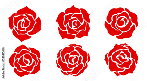 Red Roses Icon set, Valentine symbol, Isolaed Gaphic elements, Love Clip art in Flat style, Hand drawn illustration on Transparent background for Decoration, Editable