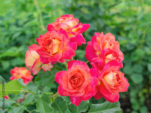 Red roses on a background of green foliage