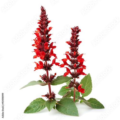 Red Salvia Isolated on White Background. Beautiful Salvia Flower