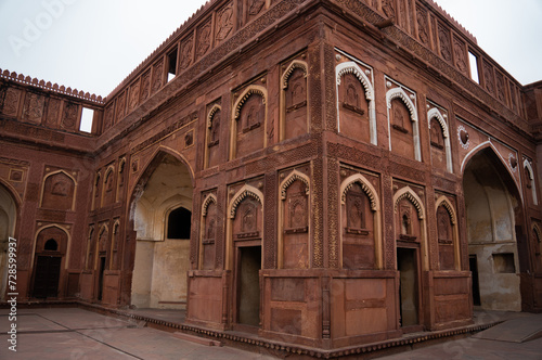 Red Sandstone Mughal architecture building in Red fort Agra India