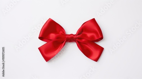 Red satin bow on a clean white background emphasizing elegance and festive decor suitable for gifts and special occasions.