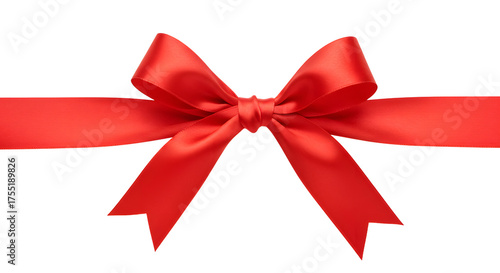 Red satin ribbon bow isolated on white background, perfect for gift wrapping and decoration