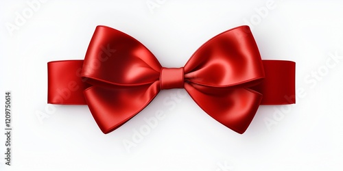 Red Satin Ribbon Bow Isolated on White Background, Simple Style, PNG Transparent