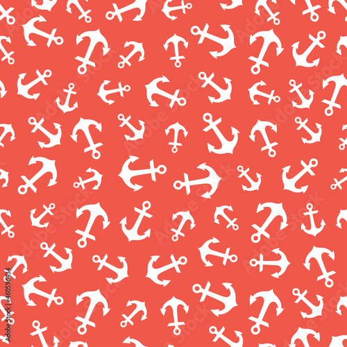 Red seamless pattern with white anchors. Cute and childish design for fabric, textile, wallpaper, bedding, swaddles, toys or gender-neutral apparel.