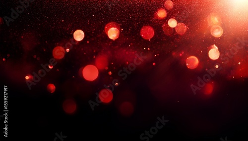 red shiny bokeh flash light leak on dark black background
